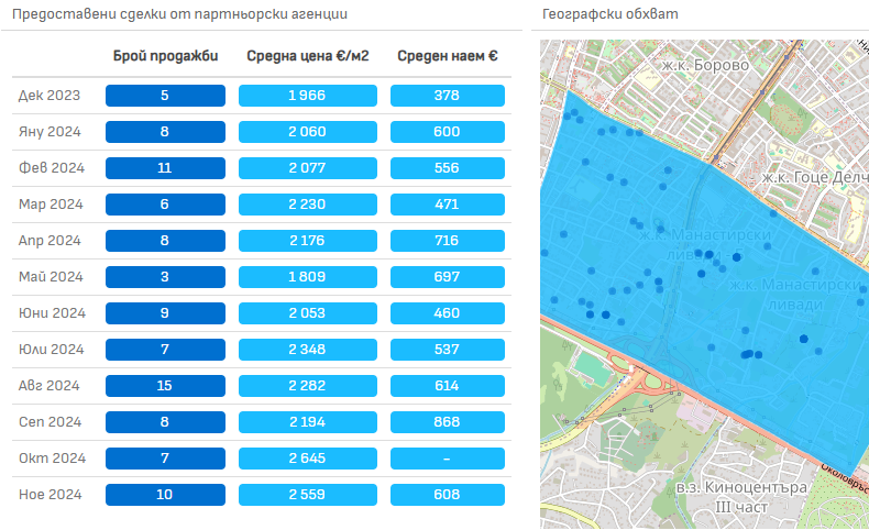 Данните са предоставени от най-големите агенции в страната и са 100% базирани на реални сделки, без фалшиви оферти или дублирани обяви.